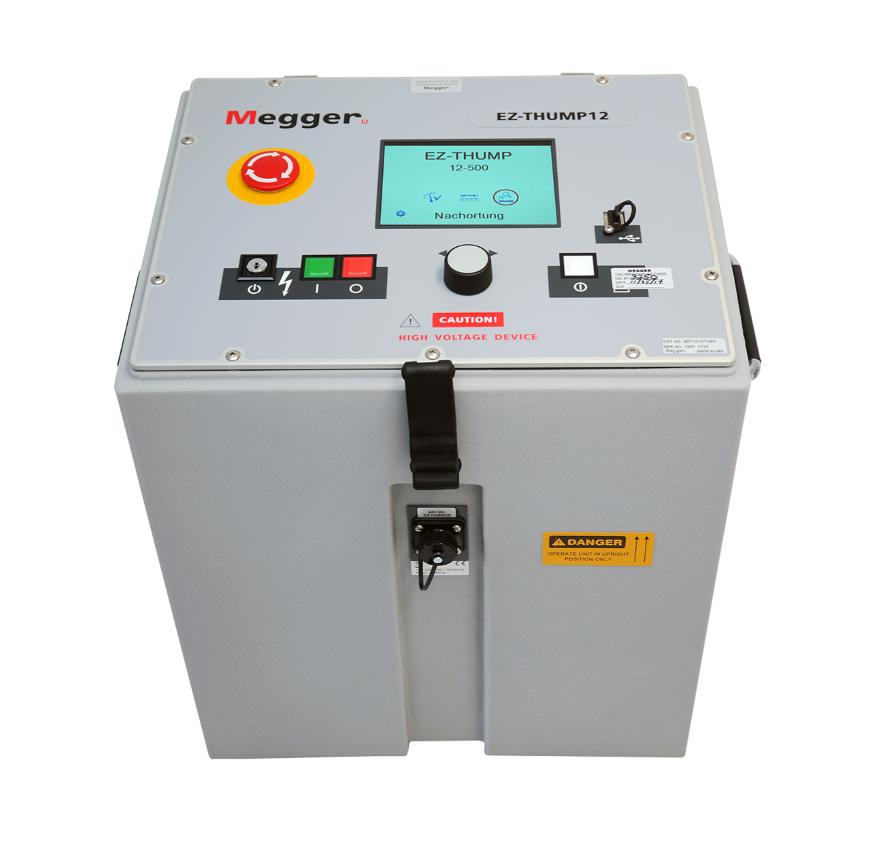 EZ-Thump 12 kV 具備輕量且極為精巧的設計,可使用交流市電或內建可充電電池供電。這些特性使其能在任何地點使用,即使是在進出不易或無市電供應的環境中亦能順利操作。內建電池設計具備長使用壽命,而當日後需要更換時,也可直接於現場完成更換。