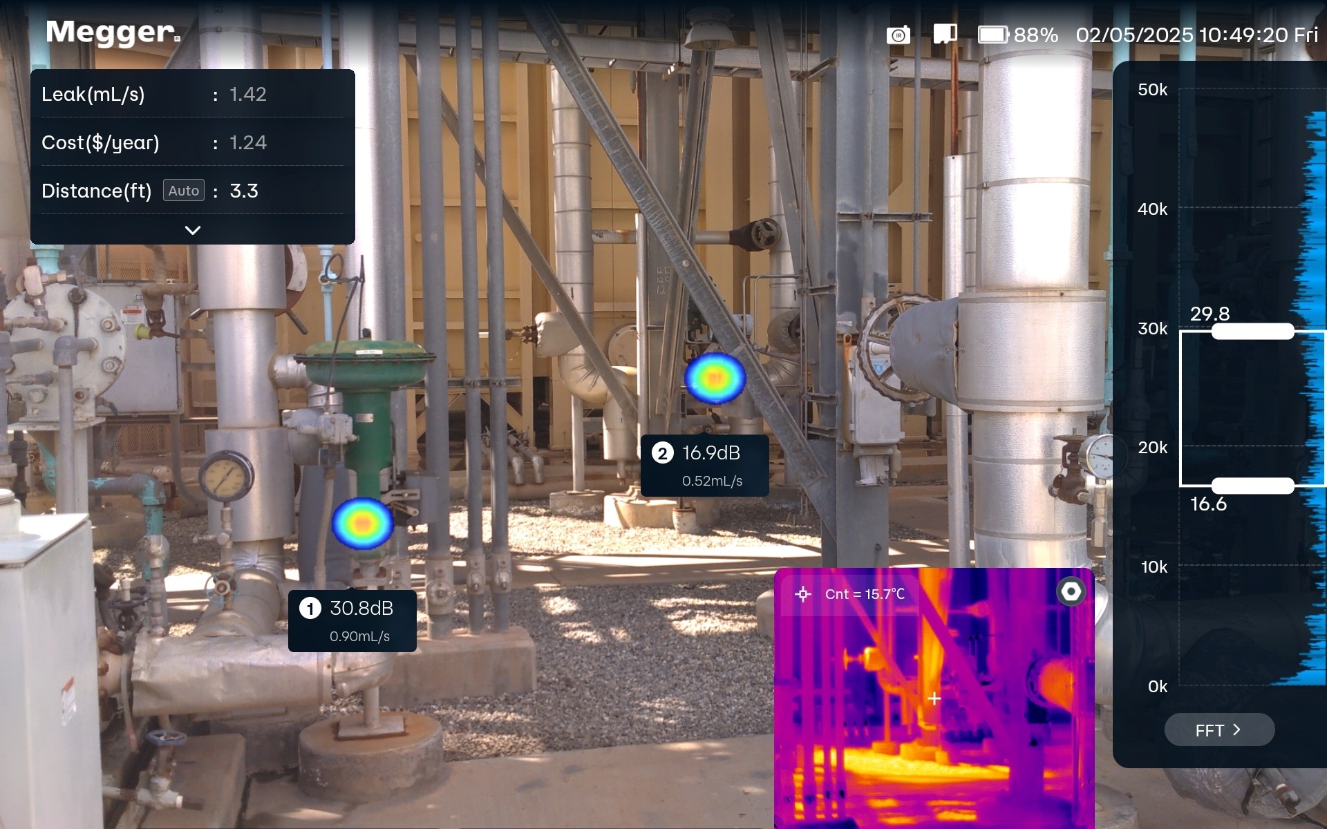 搭配選購熱影像模組時,MPAC208 可同時呈現聲學與熱影像,讓使用者將熱能特徵與聲學異常對應,加速根本原因分析。