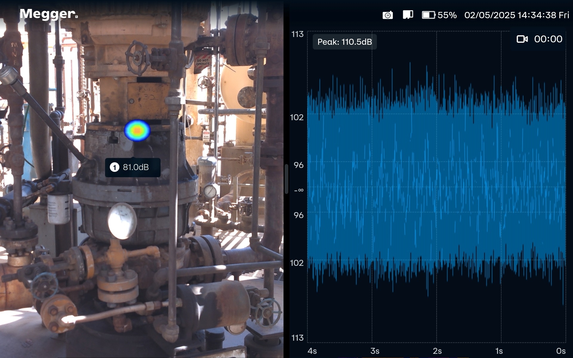 聲學數據會與一個 1300 萬像素光學相機融合,並顯示在 8 吋電容式觸控螢幕上,提供清晰、即時的視覺疊加影像,使聲源立即可見。
